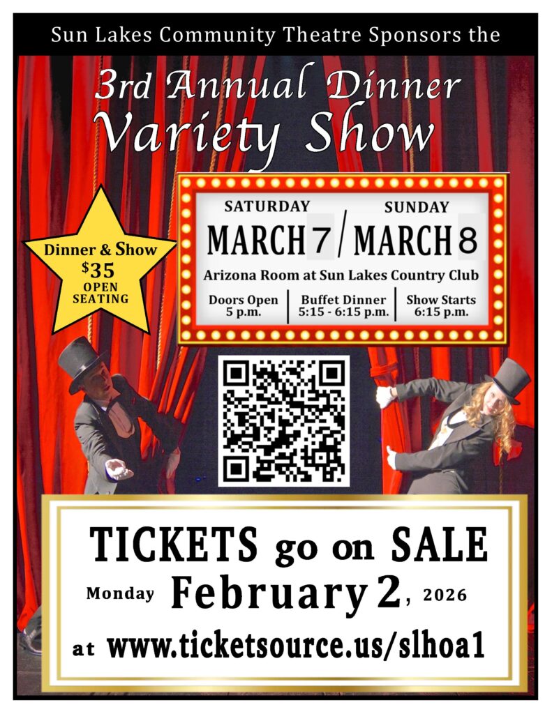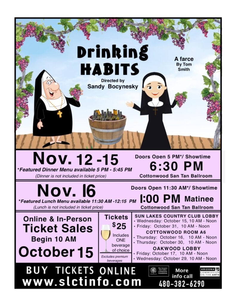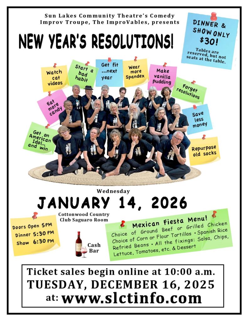 For more information about Sun Lakes Community Theatre call 480-382-6290 and leave a message. We will call you back soon after.
