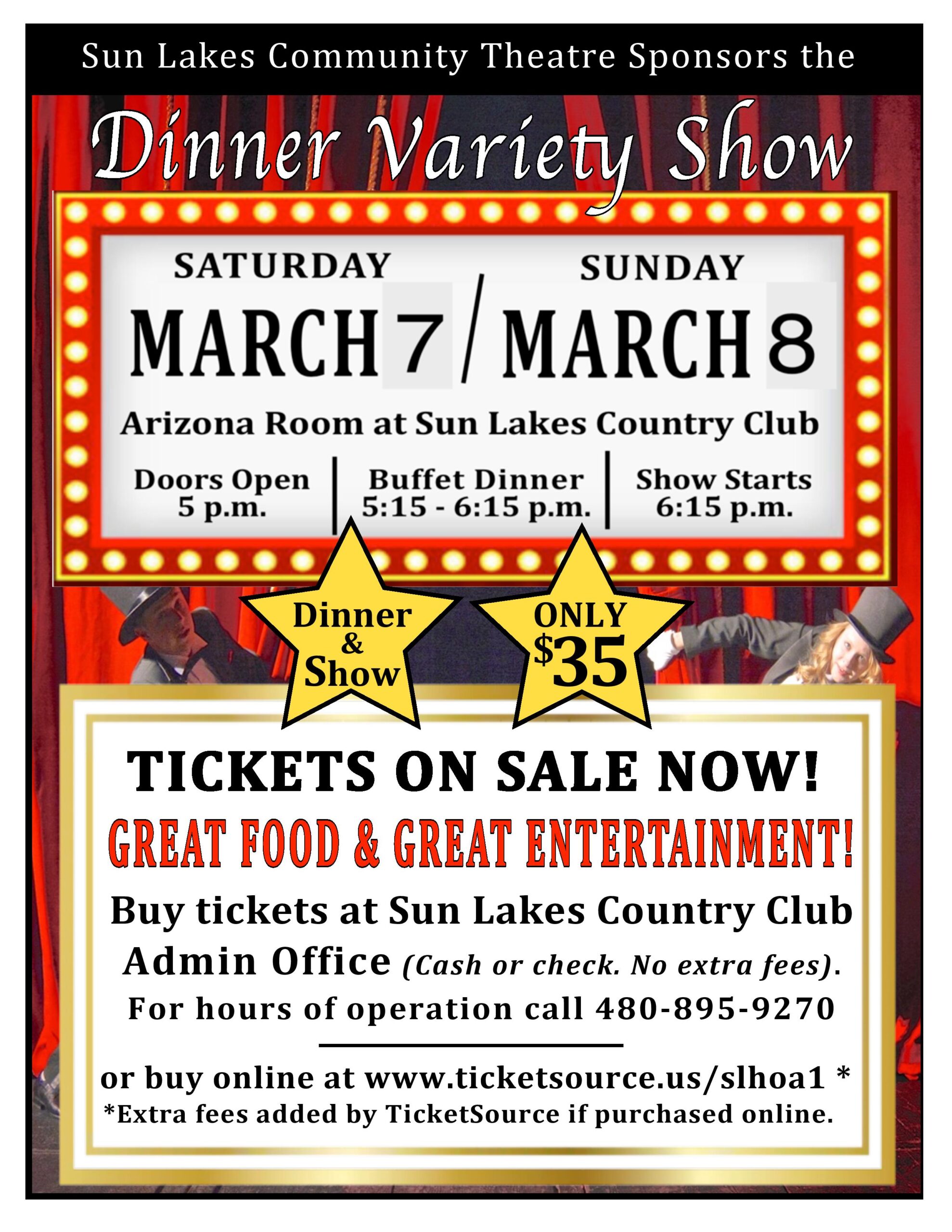 For more information about Sun Lakes Community Theatre call 480-382-6290 and leave a message. We will call you back soon after.